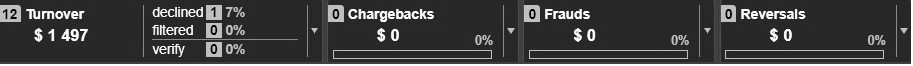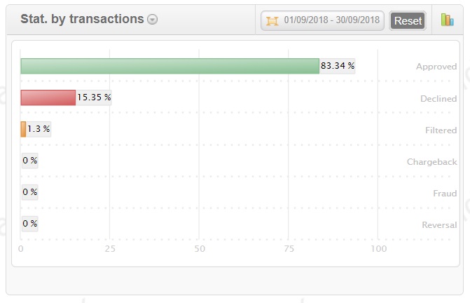 button: the ratio by volume of transactions or by amount of payments, as well as by type of transactions (sale, capture, transfer, etc). Neonpay Payment Gateway also displays statistics on negative activity and earnings.