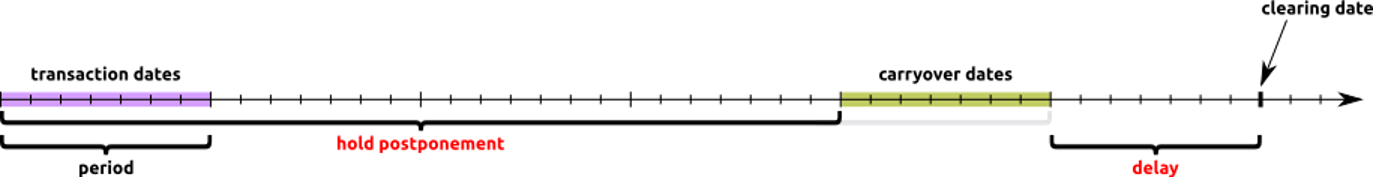 The amount to be paid for positive transactions that is included to the statement may be partially withheld for periods comparable with dispute flow and fraud claims. Holding mechanisms are used for this purpose. Holding period and amount are specified in the rate plan. The hold period is set in days. The hold value is set in percent. It is not possible to change these values after calculating the rates for the processed transaction. Each transaction has a unique period and a holding percentage calculated on the date of its processing.